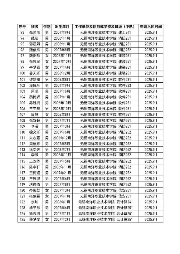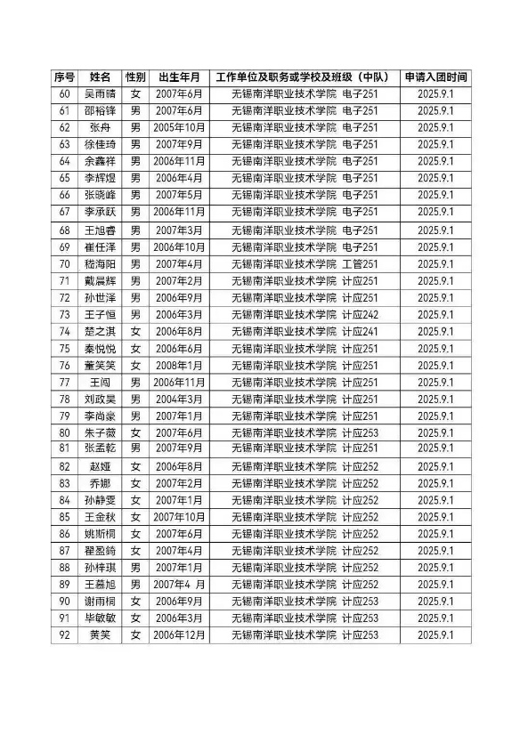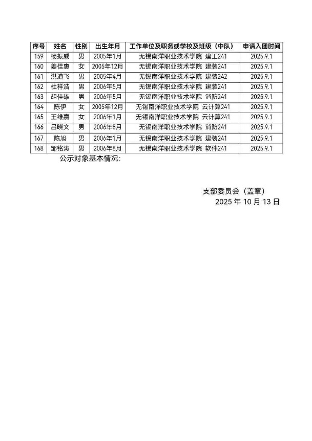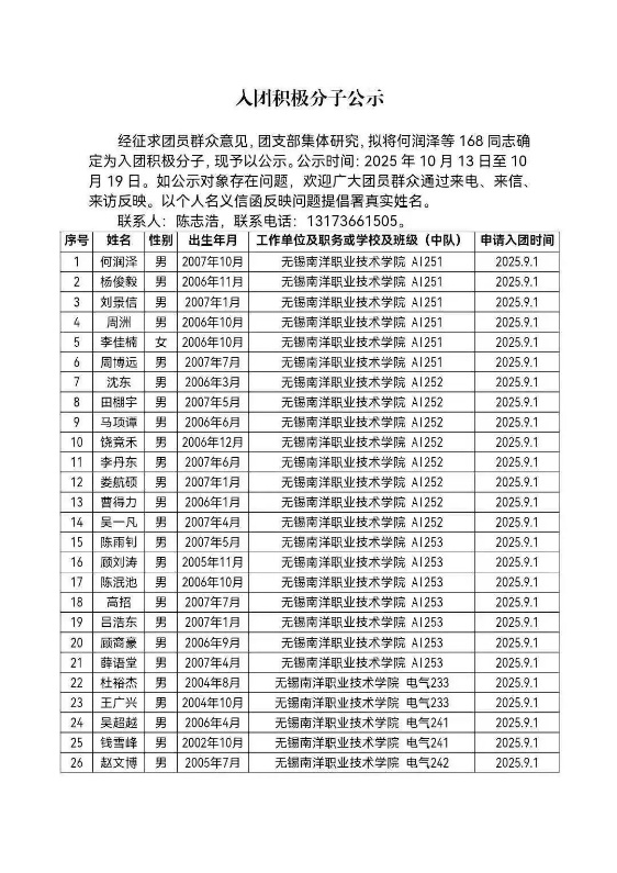 公示 | 人工智能学院团总支2025年秋季入团积极分子名单公示