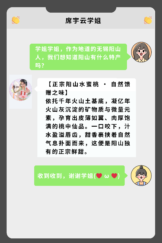 在校期间,席宇云把“扎根地方、服务产业”写进创业蓝图:在“中国水蜜桃之乡”阳山镇创办吴红宇云机械加工厂,法人总经理一肩挑。她用机械硬核功夫修设备、做加工,更瞄准桃林痛点——从种植、分拣到运输,一条龙定制“桃”专属机械方案,让水蜜桃装上“齿轮引擎”,为阳山甜蜜事业加速提效!未来计划为阳山水蜜桃产业的机械化种植、加工、运输环节提供定制化技术支持,助力地方特色产业提质增效。