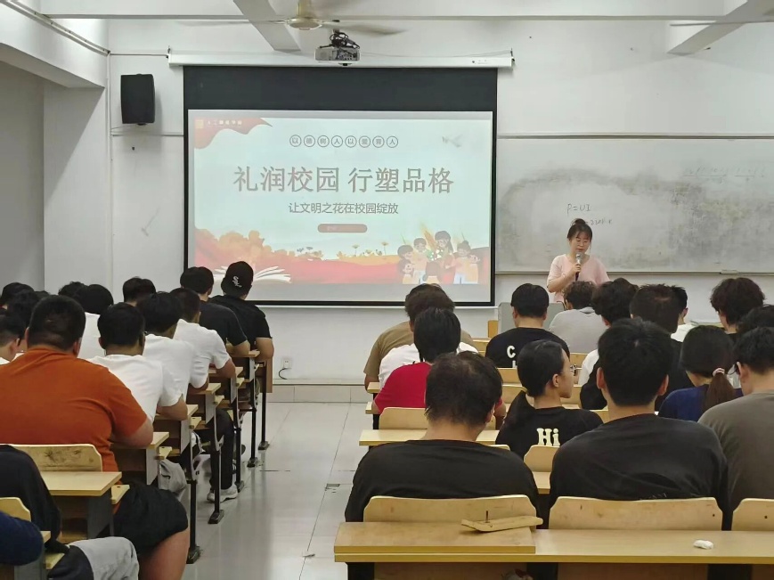 为引导学生养成文明行为习惯,树立主动践行文明的意识,推动校园文明生态建设,10月12日晚,人工智能学院大一、大二、大三在校生及专接本各班级于晚自习教室开展了“礼润校园, 行塑品格”主题班会。