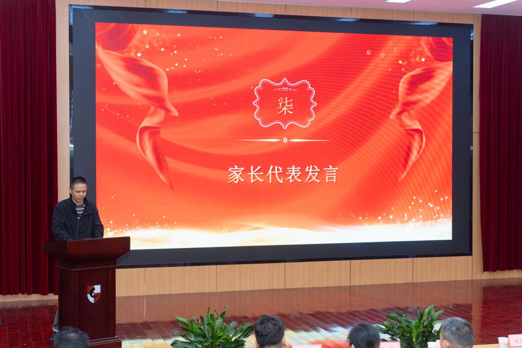 恩师之礼既至,父母之心必达。本科班王湛同学的父亲作为家长代表专程赶赴活动现场,代表本科班家长们表达共同的心声,感恩学校的悉心栽培与护航,又暖心叮嘱学子们以坚韧之举赴升本之约、以热爱逐AI之梦,质朴话语里满是牵挂与力量,引发全场深切共鸣。