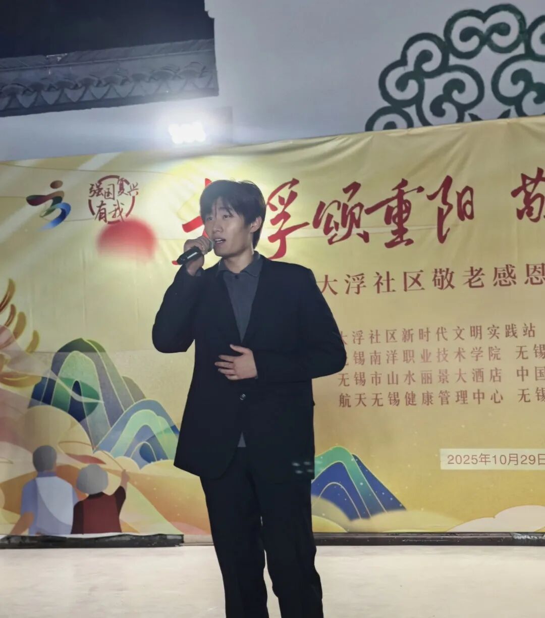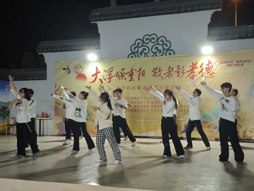 活动前,我院积极与社区紧密对接,结合老年群体喜好与自身特长,精心打磨节目;现场除带来情景剧《相亲局上的乌龙》、小合唱《身骑白马》、舞蹈《相亲相爱一家人》等精彩表演,还协助布置场地、引导观众,以实际行动践行高校服务社会的责任。