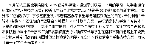 10月28日,人工智能学院155名首批报名本科项目同学荣幸参加了学校在博学楼举办的2025级本科新生开学典礼。当日,澳大利亚新英格兰大学(UNE)商学院院长Prof. Renato Villano、国际部经理Ms. Jackie Su, 江南大学继续教育学院院长王育红、南京林业大学原继续教育学院院长李化俗、南京理工大学继续教育学院院长助理史炯煜,学校常务副校长夏丽华、副校长王刚,相关职能部门及各学院负责人出席活动。开学典礼由副校长刘德宏主持。