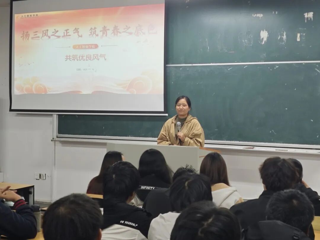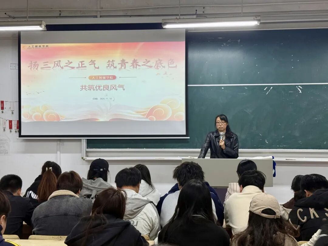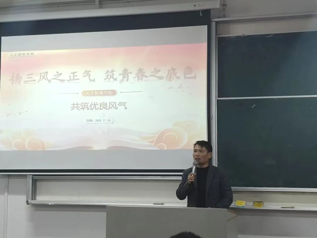 为厚植优良校园风气,夯实青年成长根基,11月16日晚,人工智能学院大一大二各班级在晚自习开展“扬三风之正气 筑青春之底色”主题班会,围绕学风、校风、舍风建设及行动计划展开深入探讨,为学生成长营造优质环境。